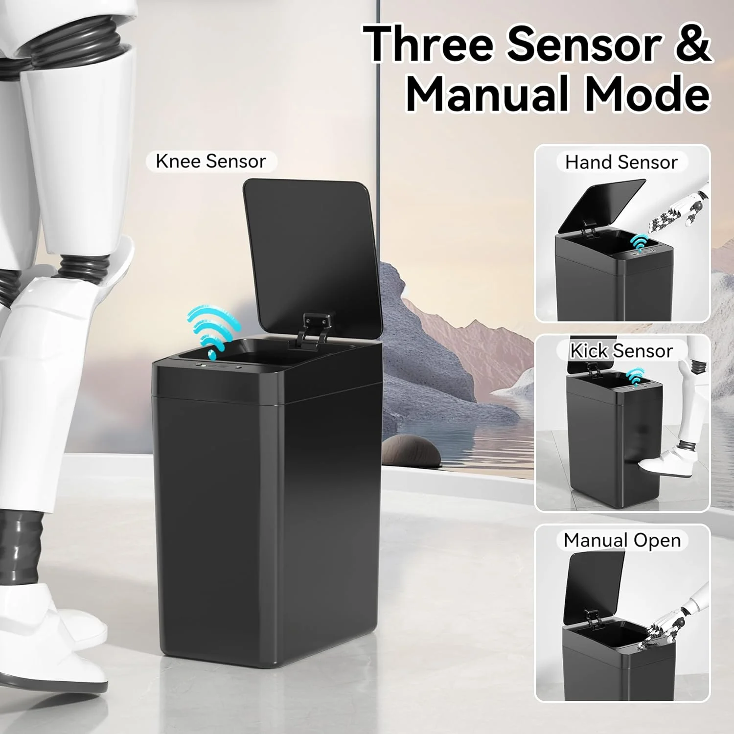 - This touchless bathroom trash can utilizes advanced infrared sensing technology, 0.1 seconds of sensing automatically open the lid, and automatically close the lid if no object movement is detected within 5 seconds.