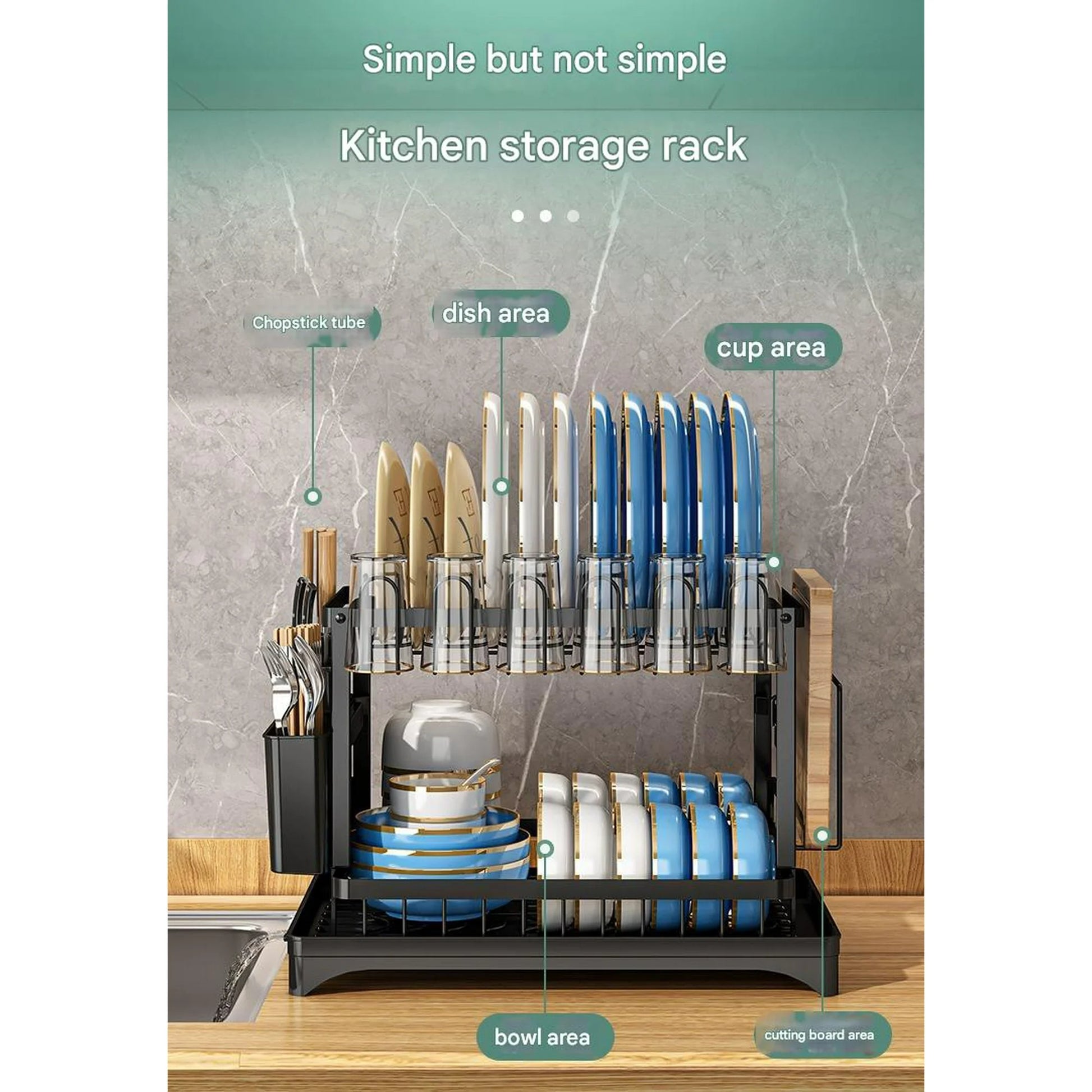 - This multifunctional dish drying rack with drainboard comes with multiple accessories. They can efficiently help you to store diverse kitchenware. This dishes drying rack can meet all your needs for storing and drying kitchenware.