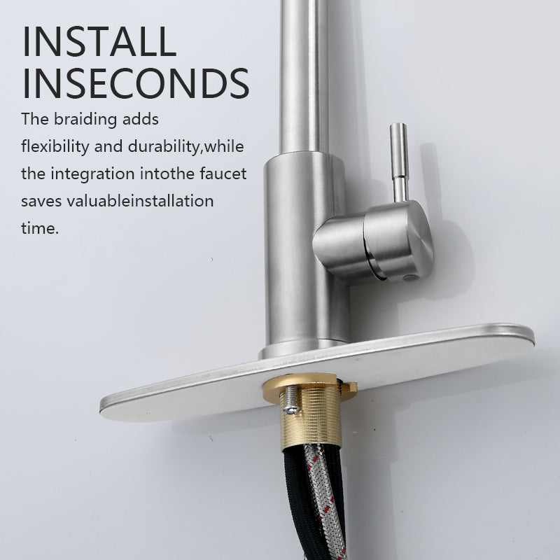 - Made from lead-free SUS 304 stainless steel, this kitchen faucet features drip-free ceramic cartridges and high-temp PEX hoses that prevent leaks, ensuring durability and safety.
