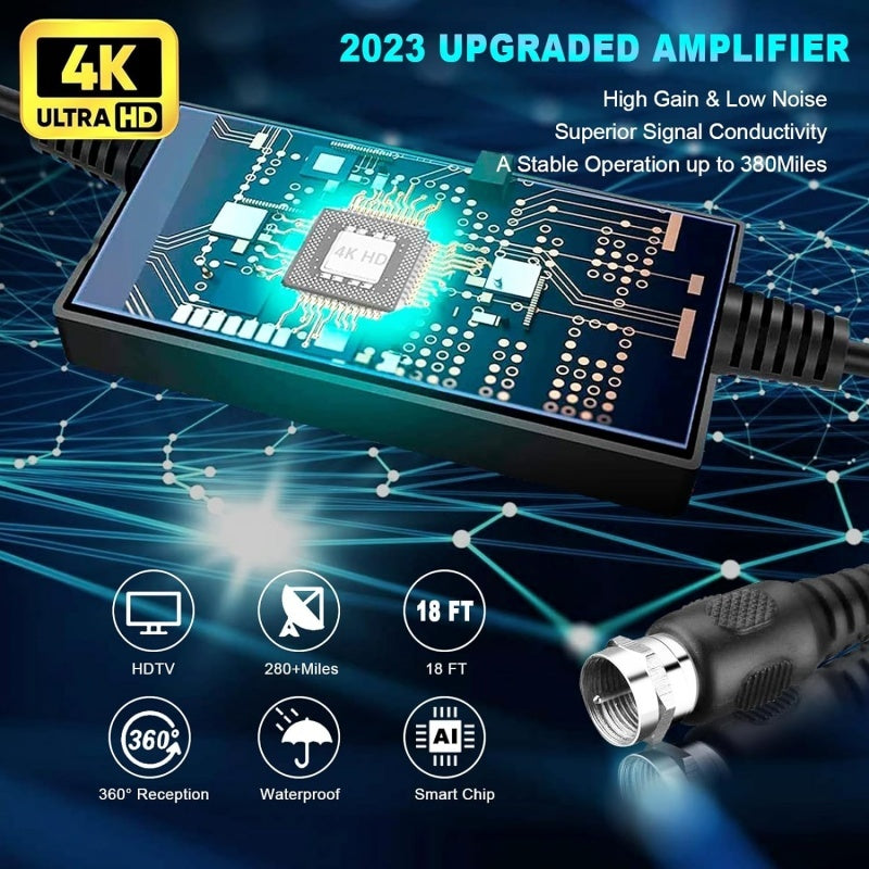 LOOKFUN Digital TV Antenna with 360° Signal Booster Long 400 Miles Reception Support 4K 1080p Smart Television with 16.4ft Coaxial HDTV Cable for Local Channels