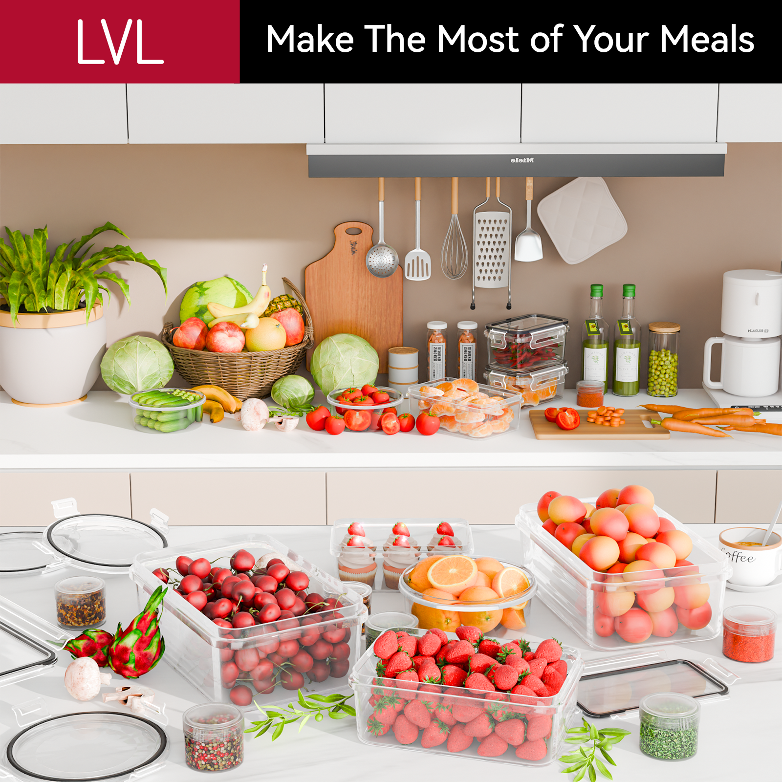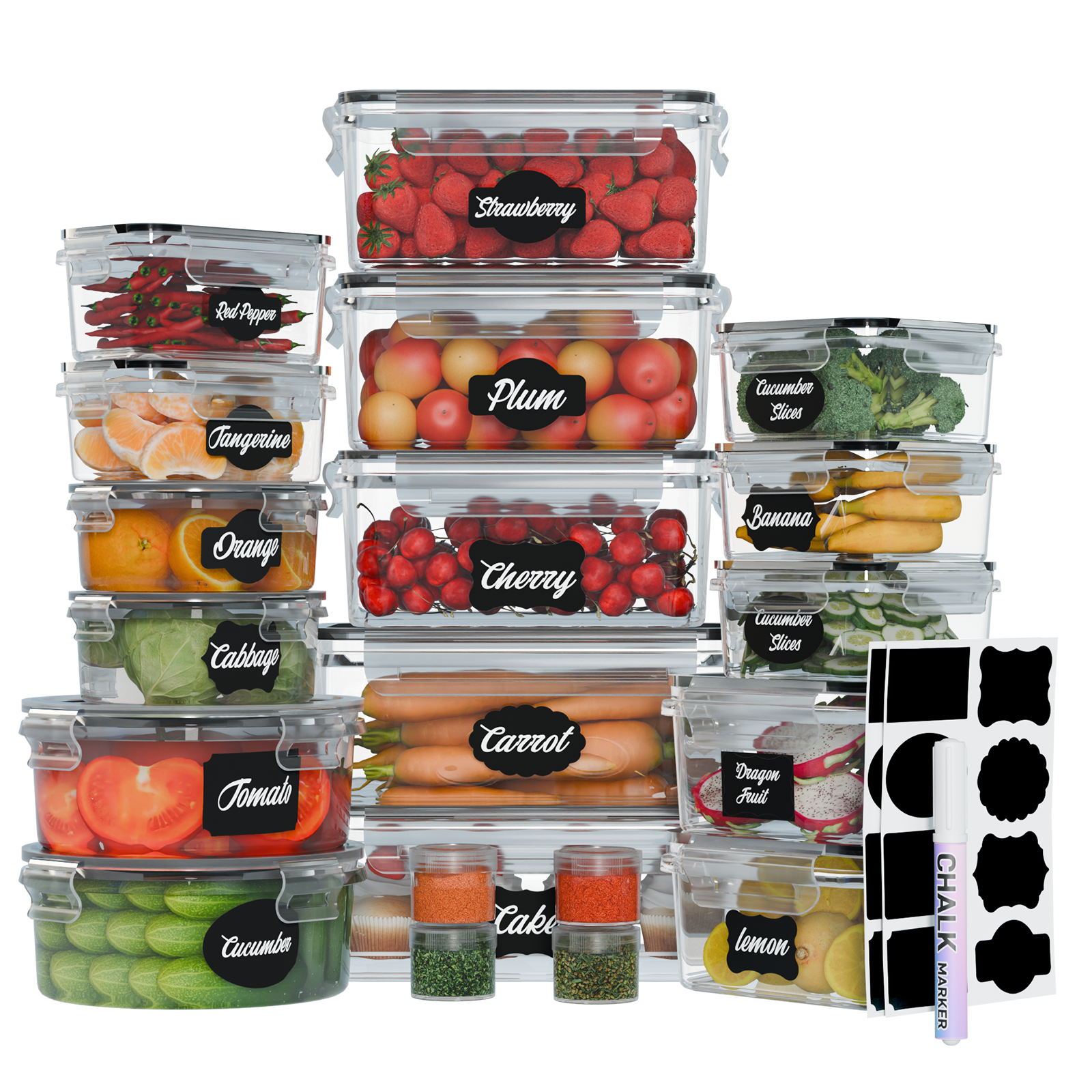 LVL 40 Pcs Food Storage Containers with Lids Airtight, Plastic Meal Prep Container for Pantry & Kitchen Organization & bento box & snack containers, BPA-Free, Leak-Proof with Labels & Marker Pen