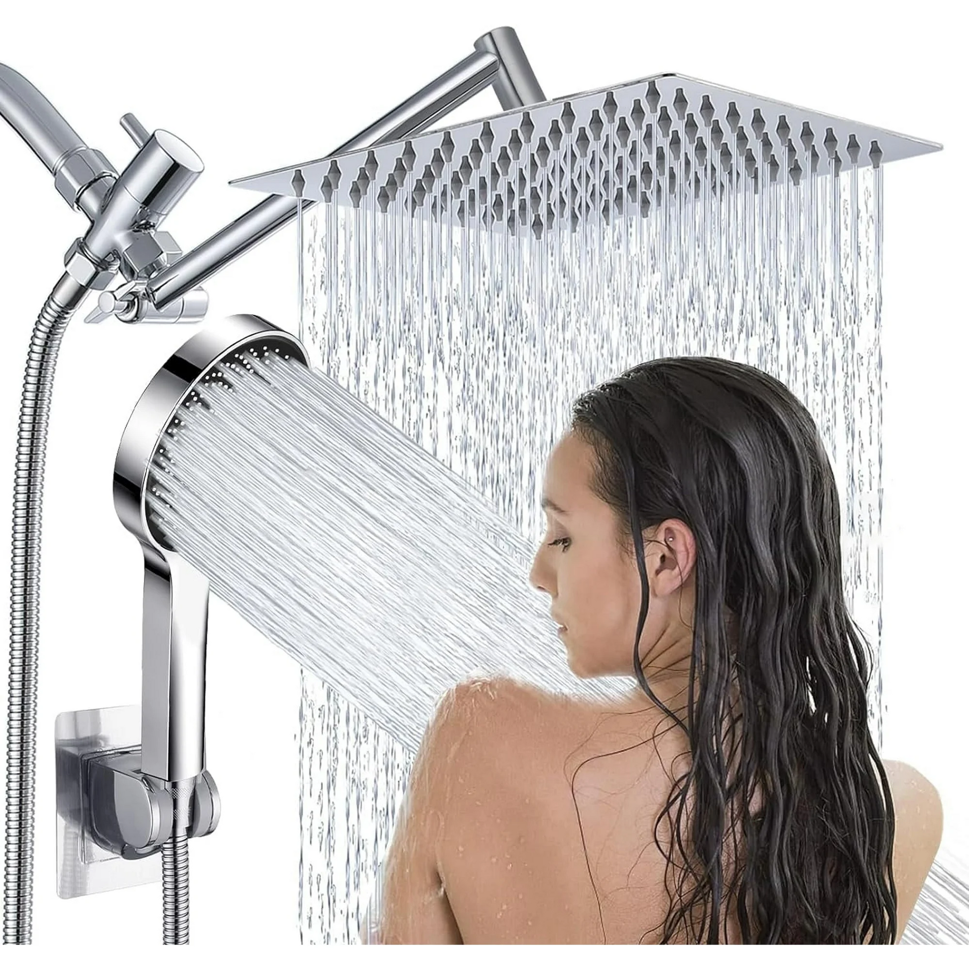 Shower Head Combo,13 Inch High Pressure Rain Shower Head with Adjustable Arm and 3 Settings Handheld ,Powerful Shower Spray Against Low Pressure Water with Long Hose