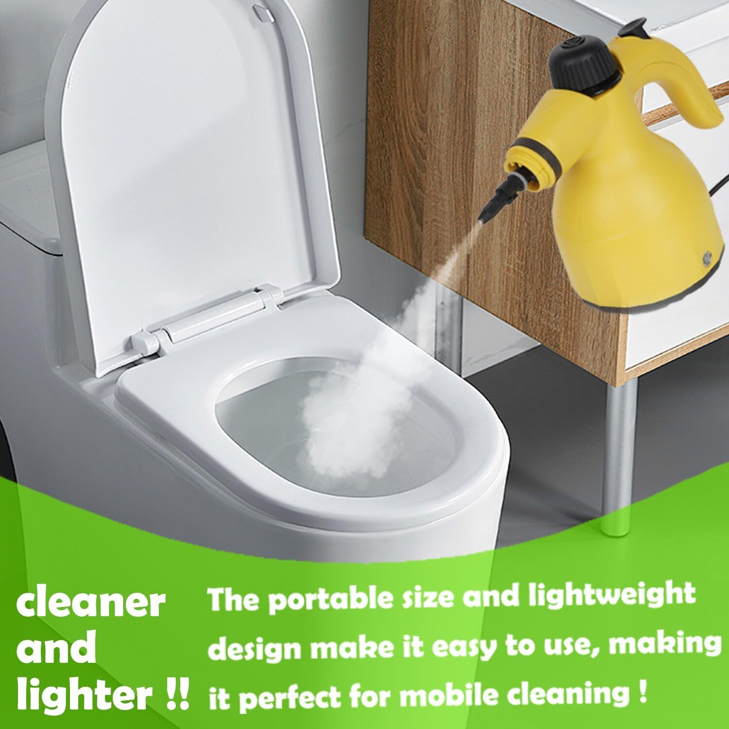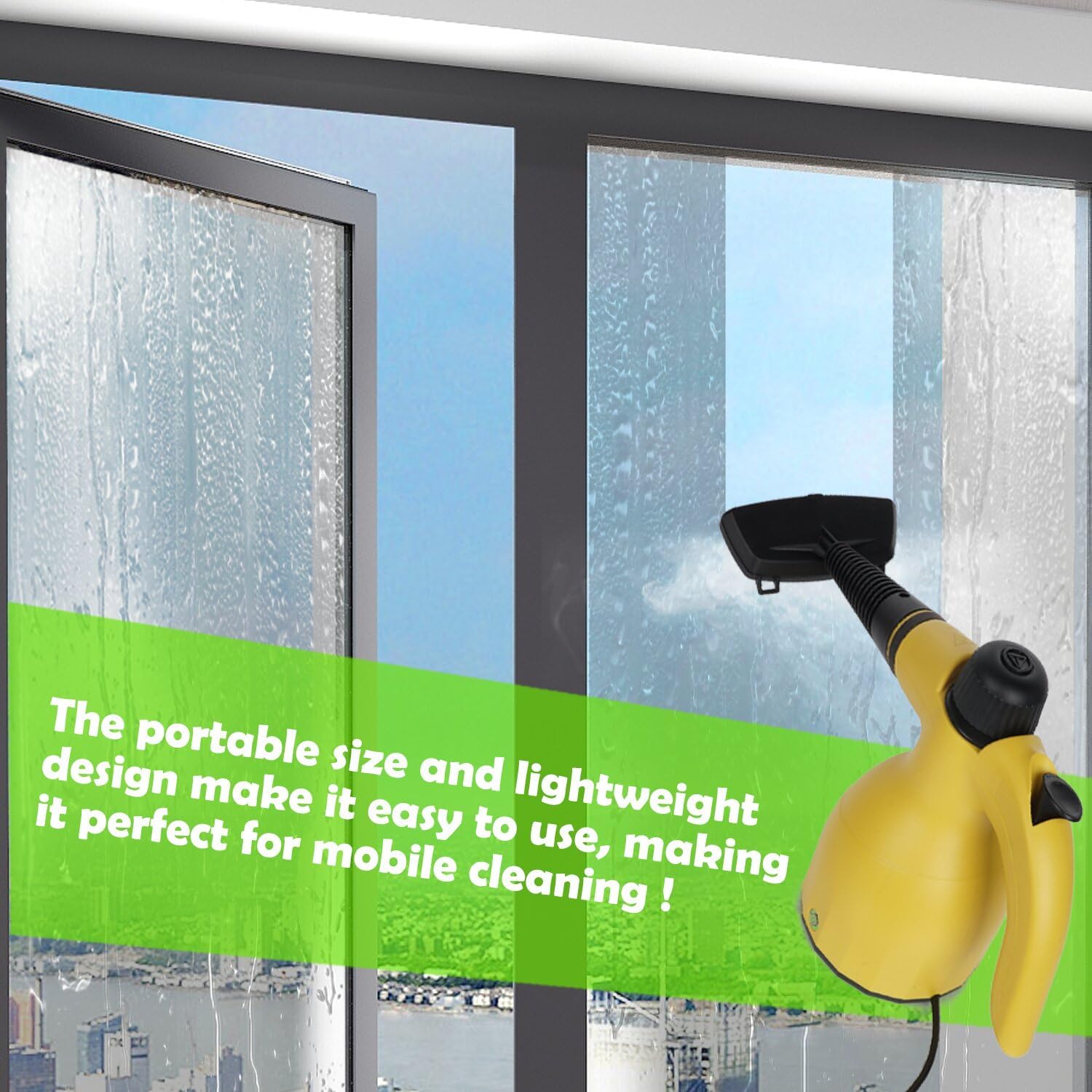 Transform your cleaning routine with this powerful handheld steam cleaner. The bright yellow unit features an ergonomic design for comfortable one-handed operation, making it perfect for tackling various household cleaning tasks. The comprehensive 12-piece accessory kit
