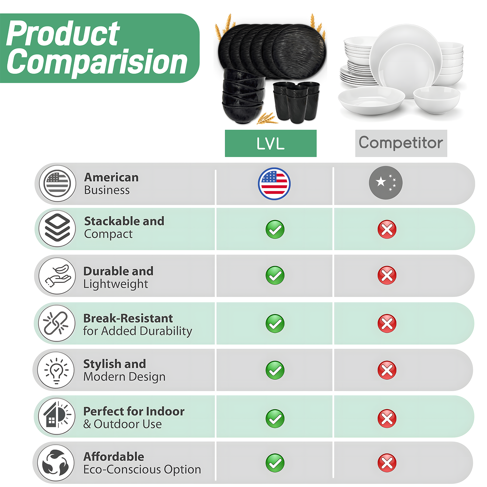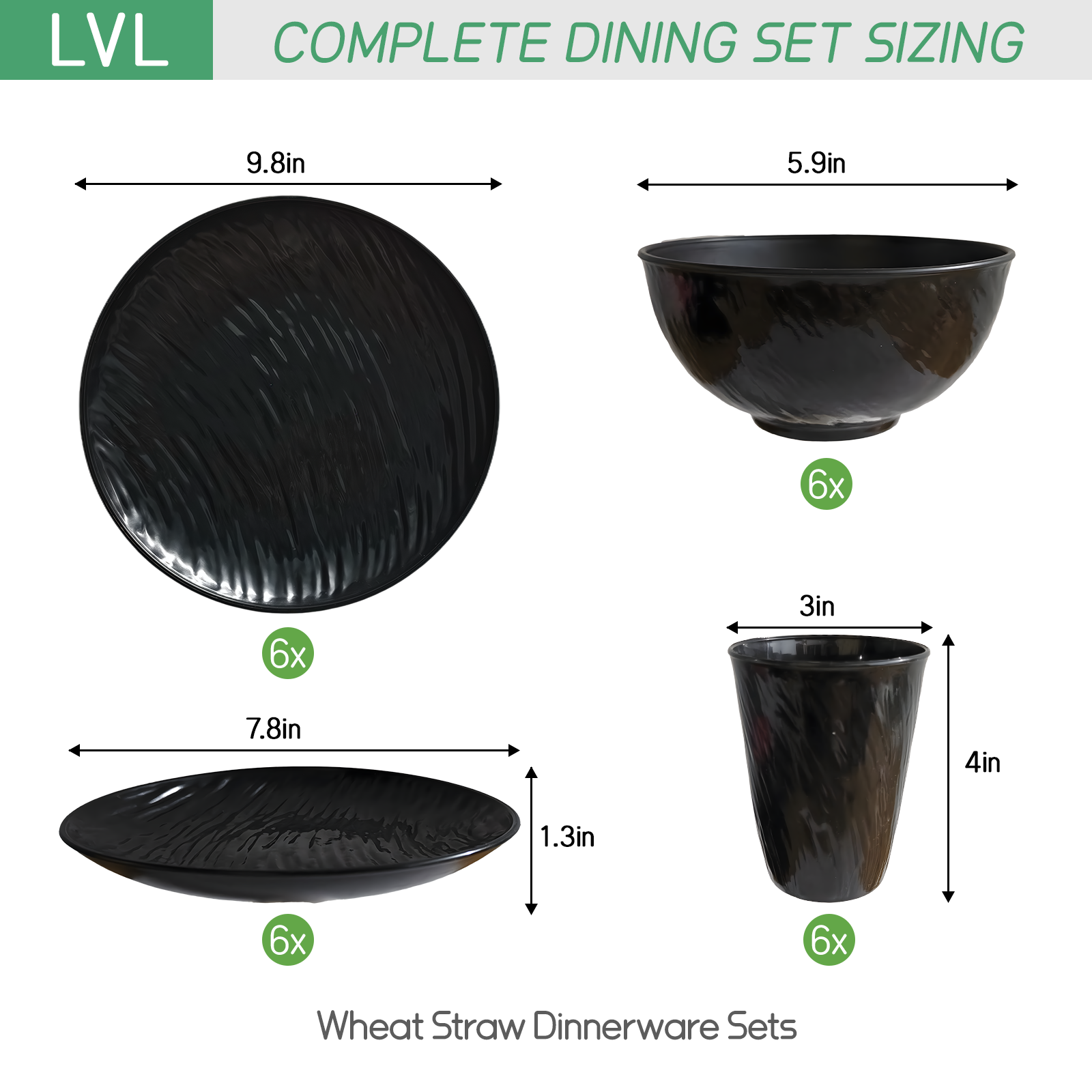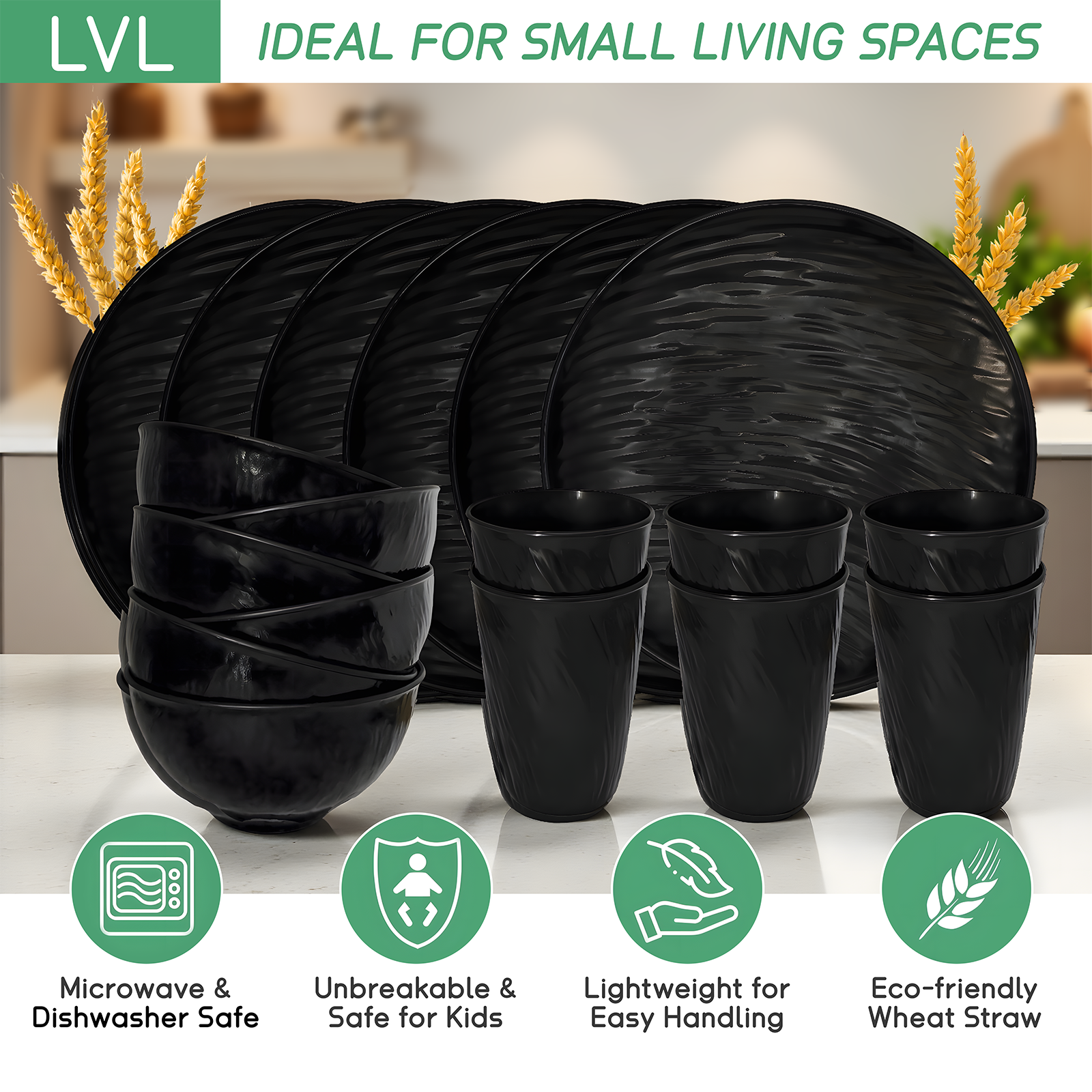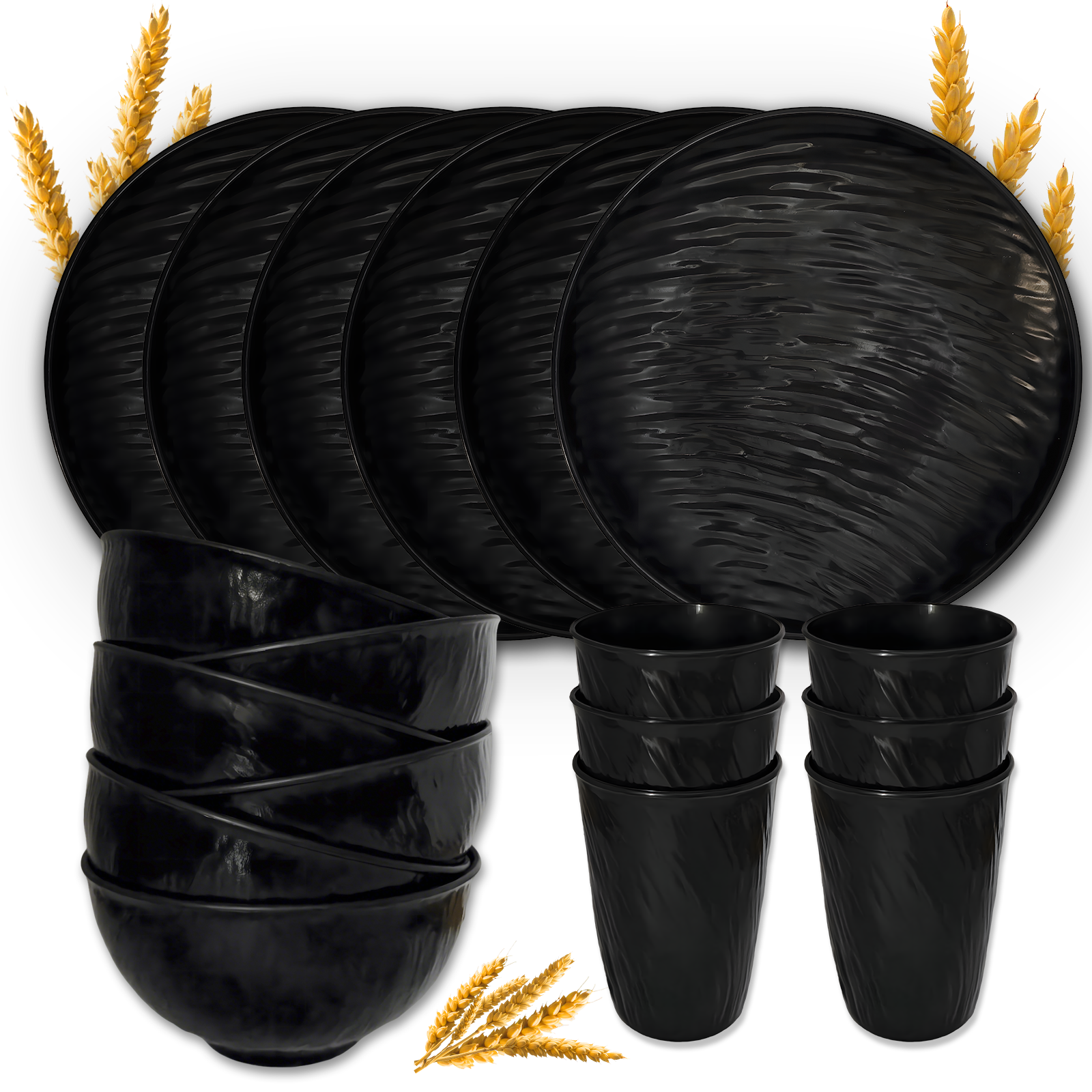 Unbreakable Dinnerware Sets, Rock Texture Bowls Sets for 18PCS, Microwave & Dishwasher Safe, Eco-Friendly, Perfect for Dinners, Buffets, and Events- Black