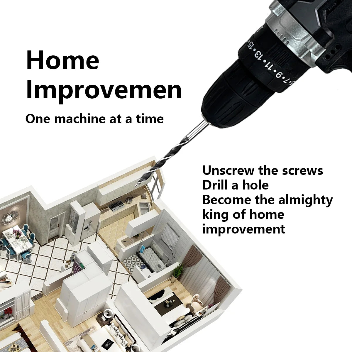 - Our electric cordless drill/ driver kit with 23 Pcs accessories: 3 x HSS Twist drill bits, 3 x Brad Point drill bits, 5 x Screwdriver bits, 9 x Sleeves, 1 x Extension Bar, 1 x Flexible Hex Shaft. A storage case is suitable for home Improvement & DIY Project.